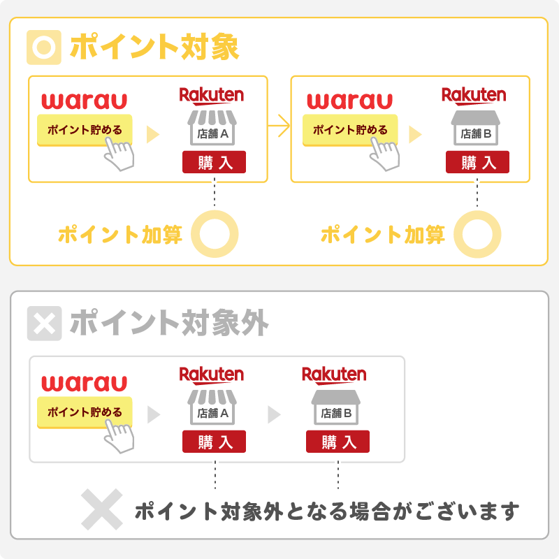 ※複数店舗での商品購入を対象とするためには、1店舗ずつワラウを経由し、決済を行ってください。